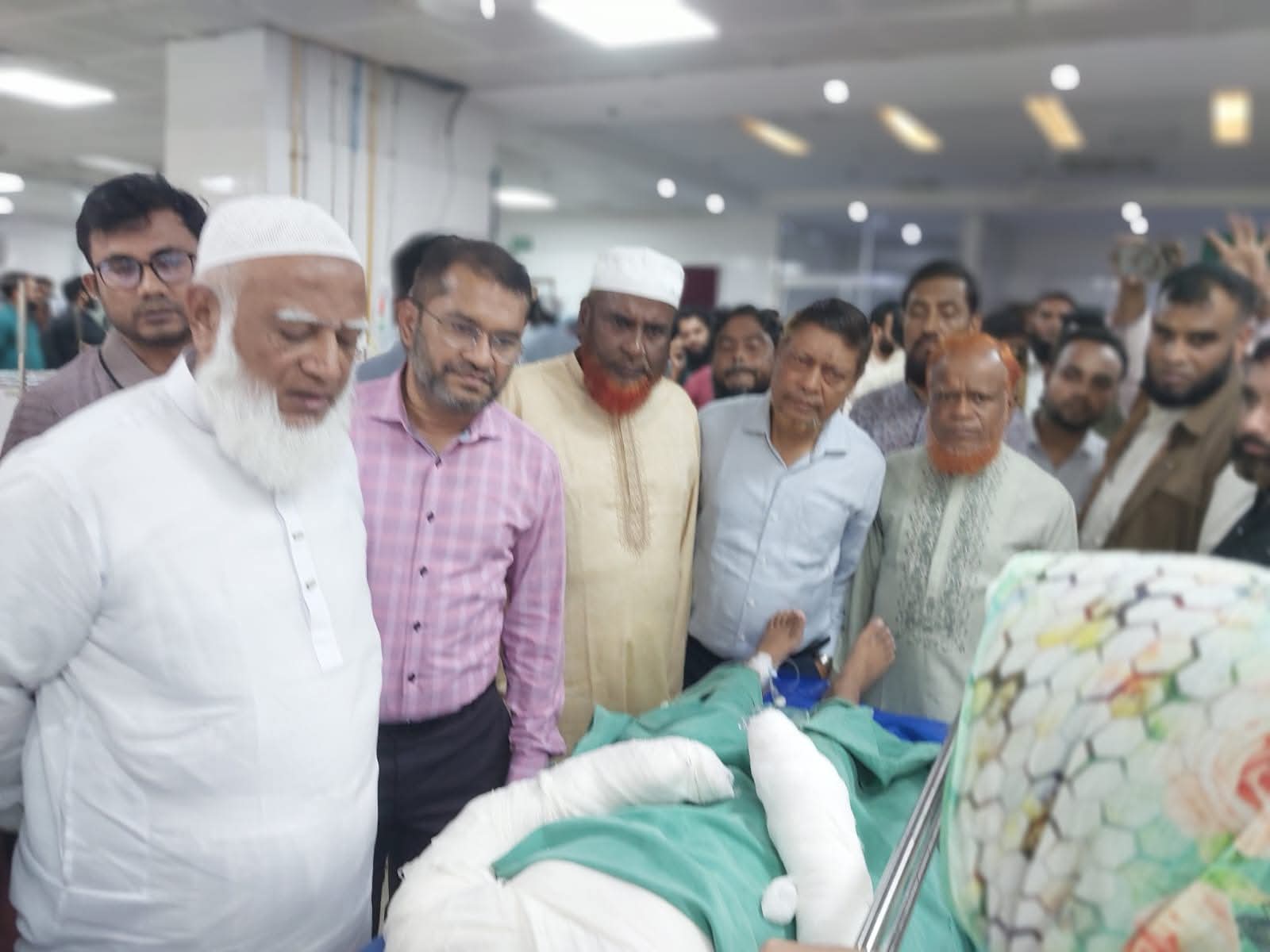 আমীরে জামায়াত সহ নেতৃবৃন্দ দগ্ধ চিকিৎসাধীনদের খোঁজখবর নেন এবং চিকিৎসকদের সঙ্গে তাঁদের সুচিকিৎসা নিশ্চিতে পরামর্শ করেন।