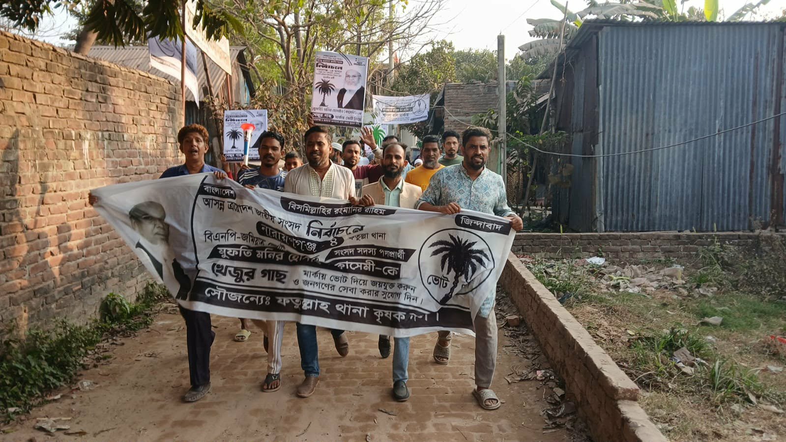 নারায়ণগঞ্জ চার আসনের বিএনপি শরীক দলের মনোনীত প্রার্থী মনির হোসাইন কাসেমীর খেজুর গাছ মার্কার নির্বাচনী মিছিল করেন ইউনিয়ন কৃষকদলের নেতৃবৃন্দ। তারা ফতুল্লা থানা আওতাধীন এনায়েত নগর ইউনিয়ন তিন নং ওয়ার্ড নবীনগরের বিভিন্ন সড়কে নির্বাচনী মিছিল ও খেজুর গাছের পক্ষে ভোট চান। আজ ৬ ফেব্রুয়ারি শুক্রবার বিকেল তিনটার দিকে এই নির্বাচনী মিছিল বের হয়।