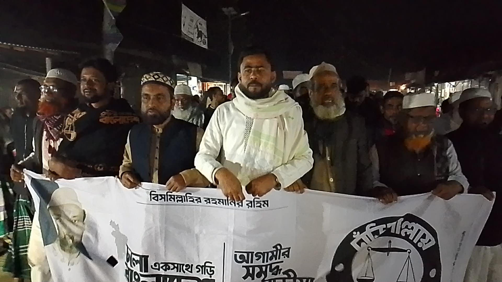 এর আগে ইউনিয়নের বিভিন্ন ওয়ার্ড থেকে কর্মী সমর্থক বাদ মাগরিব জামায়াতের কার্যালয়ে উপস্থিত হন। মিছিল শেষে নেতৃবৃন্দরা সংক্ষিপ্ত আলোচনা সভা করে সমাবেশ সমাপ্তি করেন। এ সময় বক্তব্য রাখেন, উপজেলা নায়েবে আমীর মোঃ গোলাম মোস্তফা, জামায়াত নেতা (অবঃ) সুপার আলহাজ্ব মাওলানা আলী আকবর, উপজেলা এনপিপির আহ্বায়ক মোঃ মামুনুর রশীদ মনজু,খেলাফত মজলিসের আমীর মোঃ রফিকুল ইসলাম,উপজেলা শ্রমিক কল্যাণ ফেডারেশনের সভাপতি মোঃ জাহিদুর রহমান সহ ১০ দলীয় জোটের নেতৃবৃন্দ।
