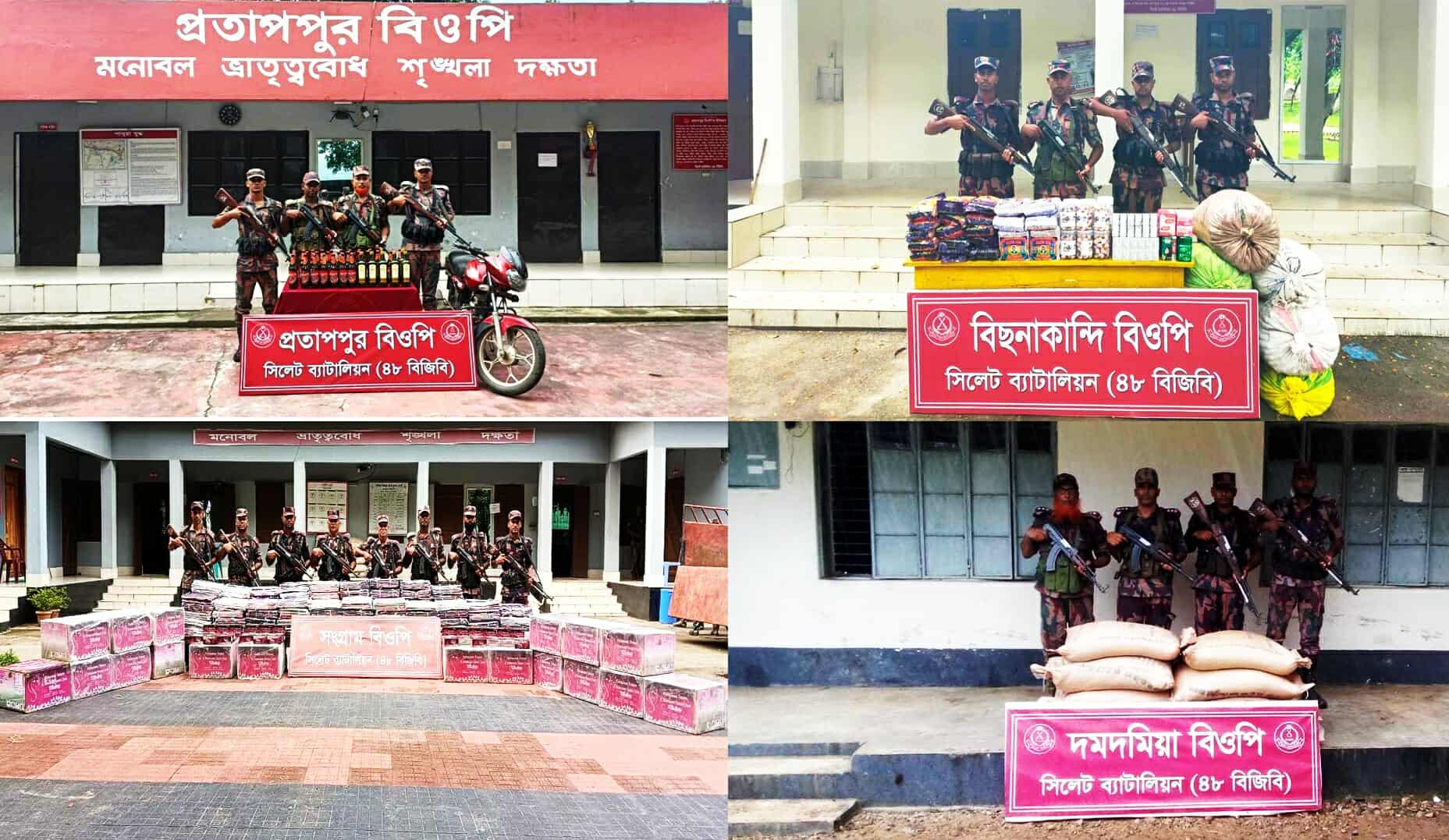 সিলেট বিভাগের সীমান্ত এলাকায় বিজিবির অভিযানে প্রায় দেড় কুটি টাকার ভারতীয় মালামাল জব্দ